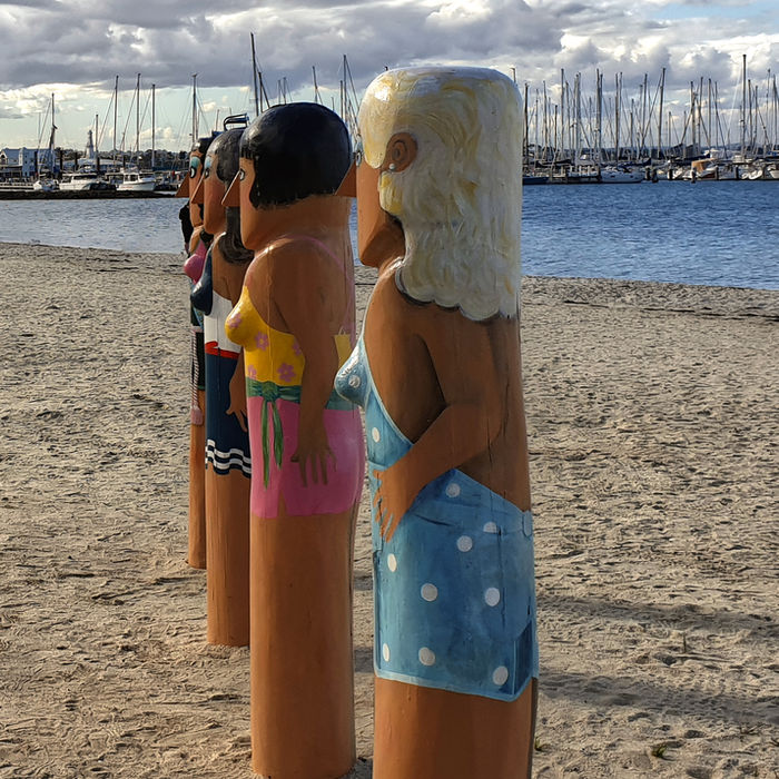 Geelong’s waterfront is world-renowned, largely thanks to the Bollard Trail. Artist Jan Mitchell transformed 104 reclaimed pier pylons into vibrant characters representing the city's timeline.